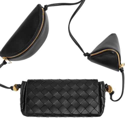 Bottega Veneta/葆蝶家 22新款 女士小号黑色羔羊皮金色饰面多口袋肩带单肩包717429VCP3C8425
