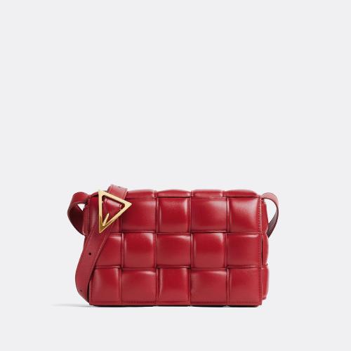 Bottega Veneta/葆蝶家 INTRECCIATO系列女士红色羊皮编织款拉链开合单肩包斜挎包手提包女包 547225-V0016-6423