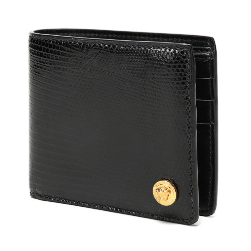 VERSACE/范思哲 男士黑色鳄鱼纹皮革经典美杜莎金属头像装饰短款双折钱夹钱包卡包男包 DPU2463-DCOV4-D410H
