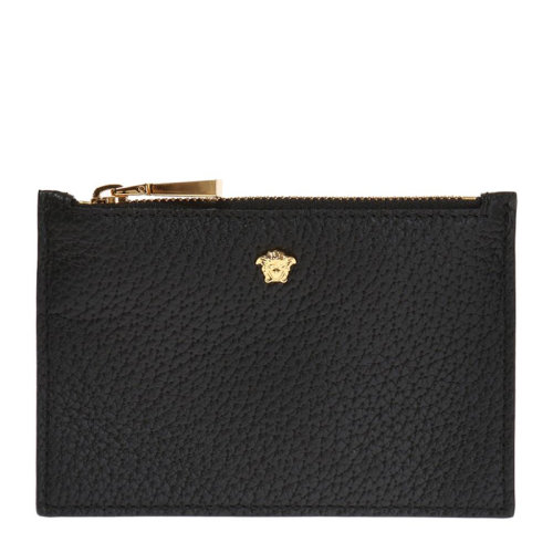 VERSACE/范思哲 MEDUSA系列女士黑色纹理小牛皮经典金属美杜莎装饰拉链开合钱夹钱包卡包手拿包女包 DPM6472-DGOV2-D41OH