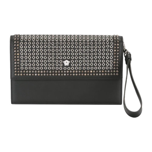 VERSACE/范思哲 男士黑色小牛皮铆钉装饰拉链开合公文包手拿包手包腕包男包 DP84725-DARLS-K41OT