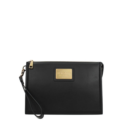 VERSACE/范思哲 男士皮革金属LOLG手拿包 黑色 DP85102-DVIT88-D41TR