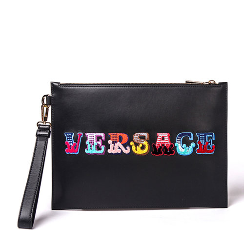 VERSACE/范思哲 男士 黑色牛皮印花图案手拿包 DP84725 DVSIG D41MP HJH0015X