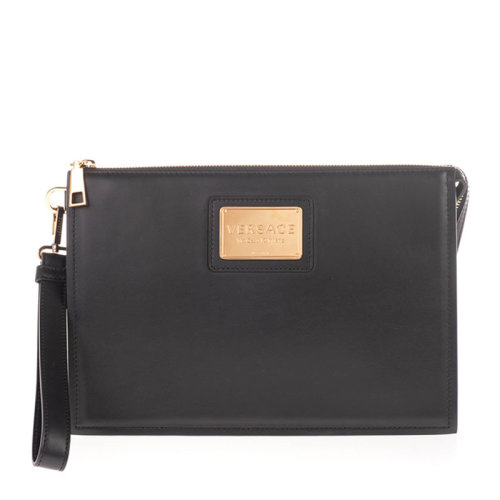 VERSACE/范思哲 男士黑色小牛皮金属字母徽标装饰拉链开合手拿包公文包钱包男包 DP87631-DVIT88-D41TR