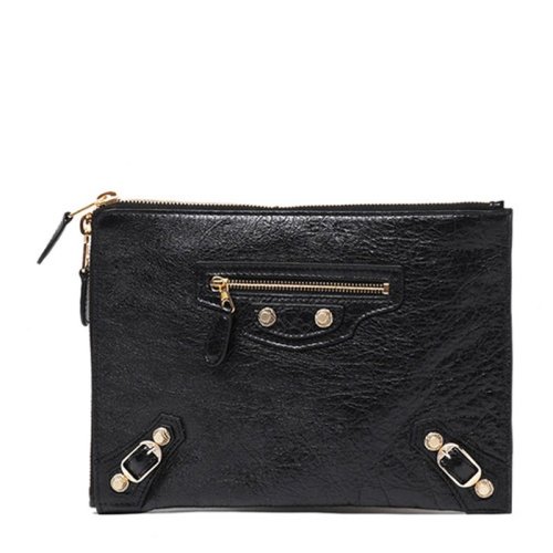 Balenciaga/巴黎世家 CLIP系列男士中号纯色羊皮铆钉元素拉链开合时尚机车包手拿包手包男包 273022-D9H04 多色可选