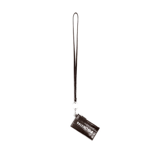 Balenciaga/巴黎世家 21新款 男士深灰色鳄鱼压纹小牛皮徽标钥匙扣零钱包5945481LRR31390