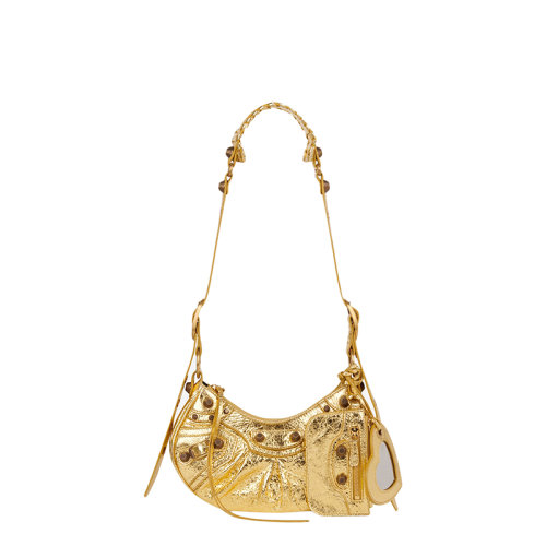 Balenciaga/巴黎世家 22春夏新款LE CAGOLE系列 女士超小号金色羊皮革鳄鱼压纹心形镜子零钱包吊坠单肩斜挎腋下包6713090GT3M8005
