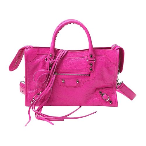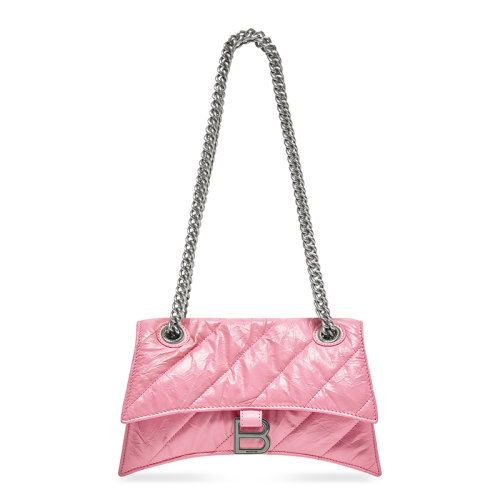 Balenciaga/巴黎世家 22新款 Crush系列 女士小号粉色皱褶粒面小牛皮配复古银色标志铆钉磁扣单肩手提斜挎包716351210J05812