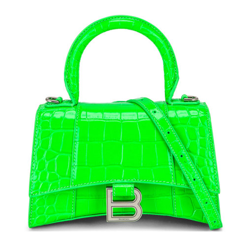 Balenciaga/巴黎世家 深绿色鳄鱼压纹闪亮小牛皮沙漏小号单肩手提包5935461LRGM3011
