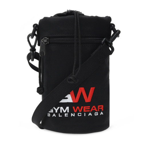 Balenciaga/巴黎世家 男士黑色尼龙字母徽标刺绣抽绳开合单肩包斜挎包水桶包男包 618193-H75XX-1000