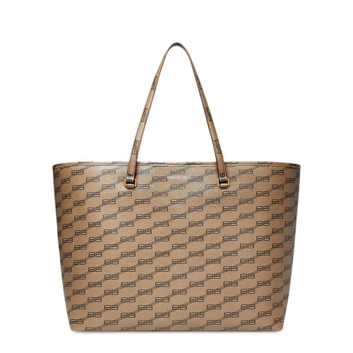 Balenciaga/巴黎世家 22新款East-West系列 女士大号米色/棕色BB老花印花帆布金扣单肩手提托特包702703210DH2762