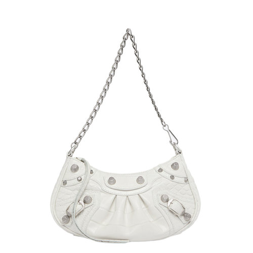 Balenciaga/巴黎世家 22新款 女士小号白色哑光小牛皮鳄鱼压纹LINDSAY饰银色配件翻盖单肩手提包701141210C99001