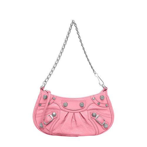 Balenciaga/巴黎世家 22春夏新款LE CAGOLE系列 女士迷你粉红色牛皮革银扣链式单肩手提腋下包 69581423EBY5812