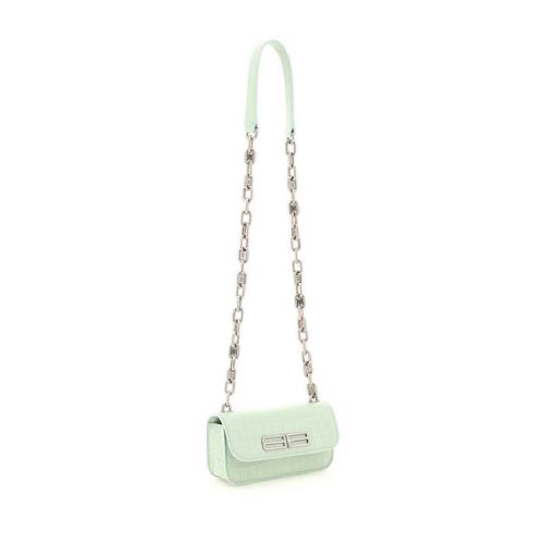 Balenciaga/巴黎世家 22新款BISTRO系列 女士XS款薄荷色人造牛皮革单肩手提篮子包6713422IE3Y3914