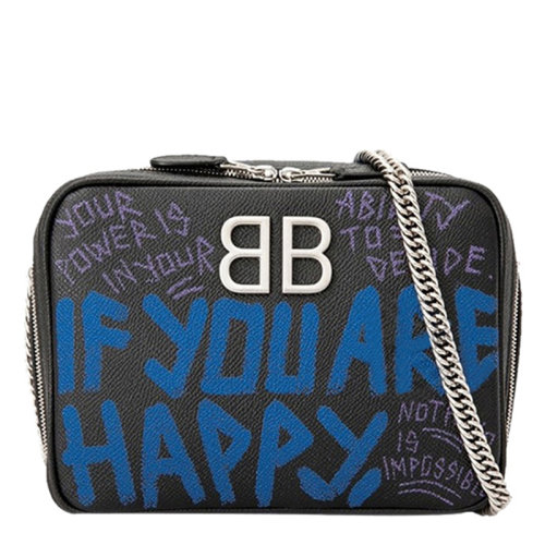Balenciaga/巴黎世家 女包 经典双B 字母印花 女士黑色牛皮时尚链条单肩斜挎包 5266780OTBN1071