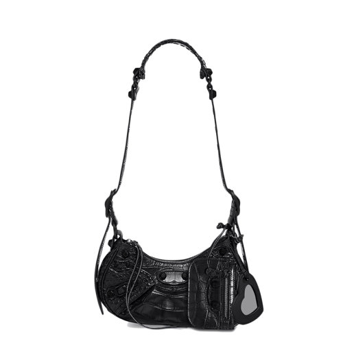 Balenciaga/巴黎世家 22新款LE CAGOLE系列 女士XS款黑色鳄鱼压纹超柔软小牛皮斜挎单肩包67130923EB71000