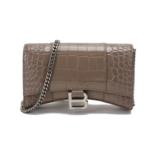 Balenciaga/巴黎世家女士鳄鱼纹Hourglass系列牛皮革仿古做旧单肩斜挎包链条包沙漏包 656050 1LR6Y