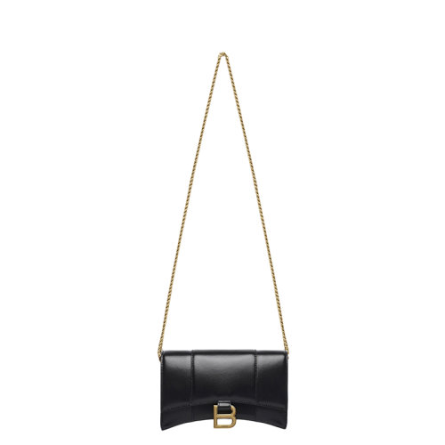 Balenciaga/巴黎世家 21新款HOURGLASS系列 女士迷你黑色小牛皮金扣链条单肩斜挎沙漏型钱包6560501QJ4M1000