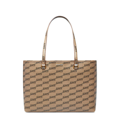 Balenciaga/巴黎世家 22新款East-West系列 女士中号米色/棕色BB老花印花帆布金扣单肩手提托特包702698210DH2762
