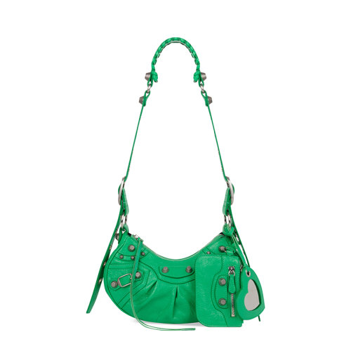 Balenciaga/巴黎世家 20 LE CAGOLE系列 女士XS号绿色小羊皮复古银色饰面单肩斜挎包6713091VG9Y3809