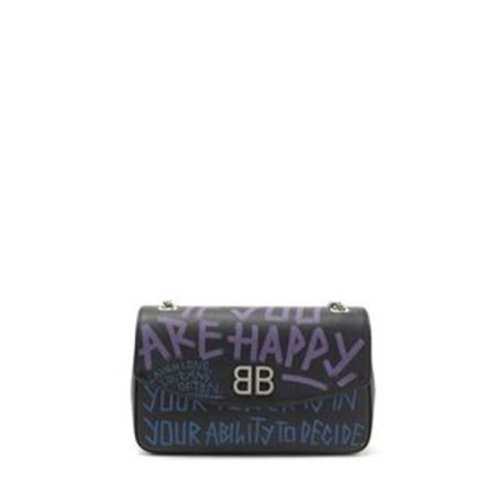 Balenciaga/巴黎世家 女包 经典双B 女士黑色小牛皮时尚链条单肩包 5169210OTBN1071