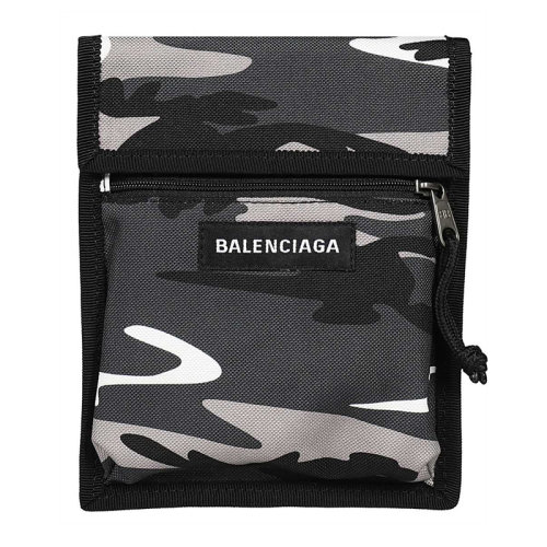 Balenciaga/巴黎世家 男士黑白灰拼色再生尼龙迷彩印花字母徽标贴饰单肩包斜挎包邮差包男包 532298-2BKM5-1100