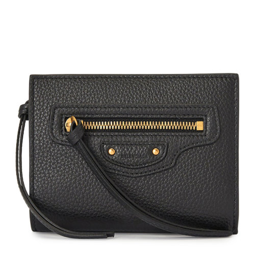 Balenciaga/巴黎世家 女士黑色小牛皮经典字母徽标压花拉链按扣开合短款双折钱夹钱包卡包女包 650846-15Y0I-1000