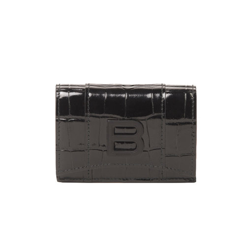 Balenciaga/巴黎世家 HOURGLASS系列 黑色迷你鳄鱼皮压纹小牛皮沙漏钱包6002121LR671000