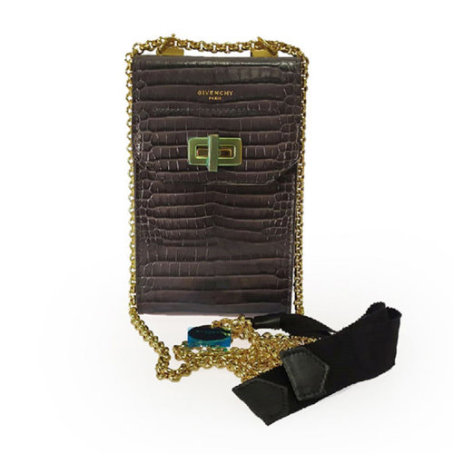 Givenchy/纪梵希 女士深咖色仿鳄鱼皮徐按扣开合时尚单肩包斜挎包链条包女包 BB60AUB0LK-098