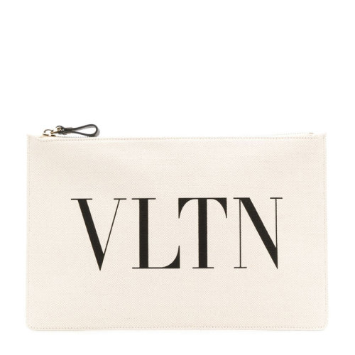 Valentino/华伦天奴 女士米色帆布经典字母徽标印花装饰拉链开合手拿包信封包女包 RW2P0269-FWB-EX9