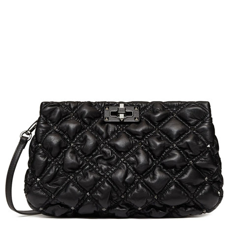 Valentino/华伦天奴 SPIKEME系列 女士小号黑色压花纳帕皮小饰钉手拿斜挎单肩包VW2B0I22EFZ0NO