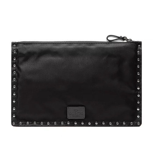 Valentino/华伦天奴 男包女包黑色皮革时尚百搭钮钉装饰拉链开合手拿包 SY2P0692VAP ONO