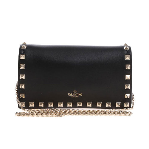 Valentino/华伦天奴 女包女士黑色皮革时尚百搭铆钉装饰链条包单肩包 QW2P0372BOL 0NO