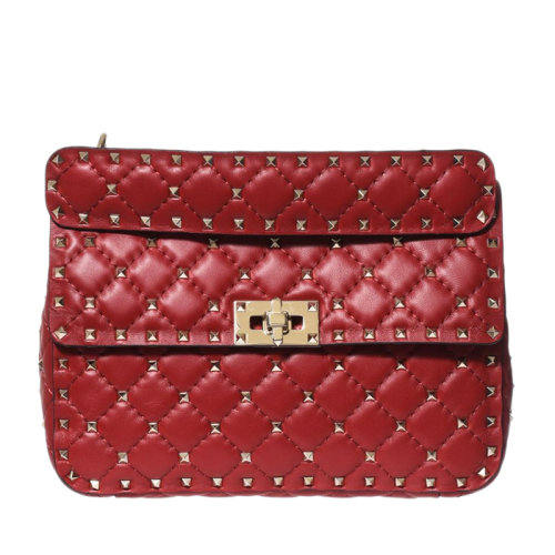 Valentino/华伦天奴 女士红色羊皮铆钉装饰旋锁开合单肩包斜挎包链条包女包 RW2B0122-NAP-0RO