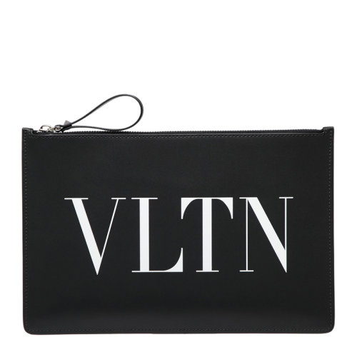 Valentino/华伦天奴 男士黑色小牛皮经典字母徽标印花装饰拉链开合手拿包信封包男包 RY2P0483-LVN-0NO