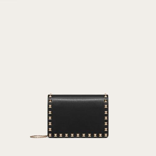 VALENTINO华伦天奴 22年春夏 女士 手拿包 Rockstud 小牛皮链条收纳包 ZW2P0249BOL0N*w*O 预定商品1-3周发货