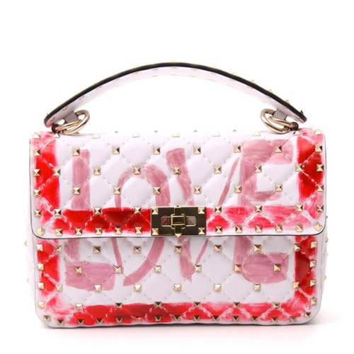 Valentino/华伦天奴【22春夏新款】女士牛皮铆钉装饰手提单肩斜挎包 XW2P0W31VSH