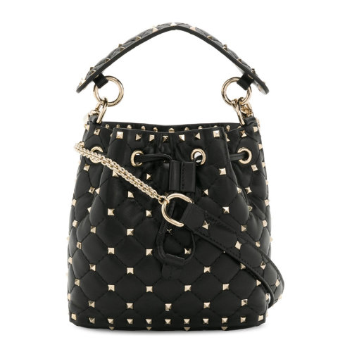 Valentino/华伦天奴 Rockstud系列女士纯色皮革菱格铆钉装饰单肩包水桶包斜挎包女包 SW2B0B59-NAP 多色可选