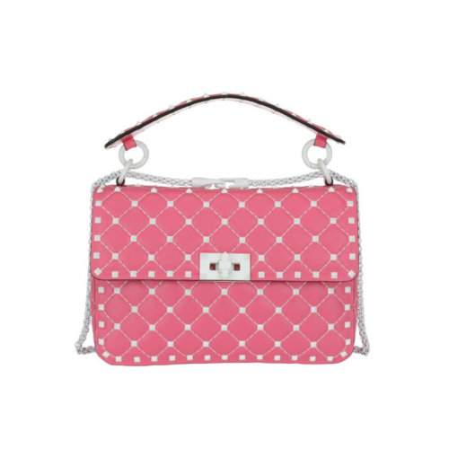 Valentino/华伦天奴 21新款 ROCKSTUD SPIKE系列 女士小号粉末色绗缝小羊皮旋转扣翻盖柳丁链条单肩斜挎包ZW2B0123NAPP45