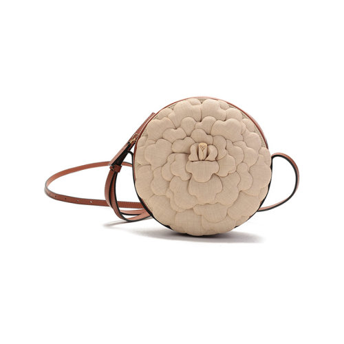 Valentino/华伦天奴 女士编织拉菲草粘胶纤维配皮玫瑰花瓣圆形单肩斜挎包 VW2B0I32TCW