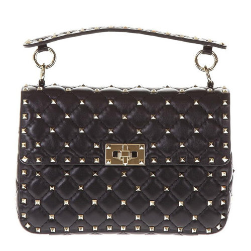 Valentino/华伦天奴 女士 时尚百搭 黑色 小牛皮铆钉装饰斜挎包单肩包 QW0B0122NAP 0NO HJH0015X
