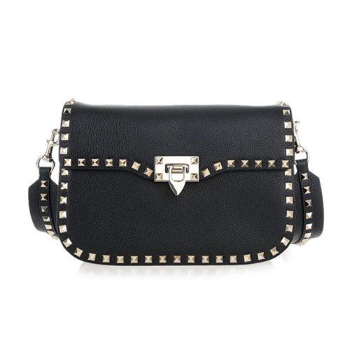 Valentino/华伦天奴 女包女士黑色皮革时尚百搭铆钉装饰斜挎包单肩包 RW2B0C25VSL 0NO