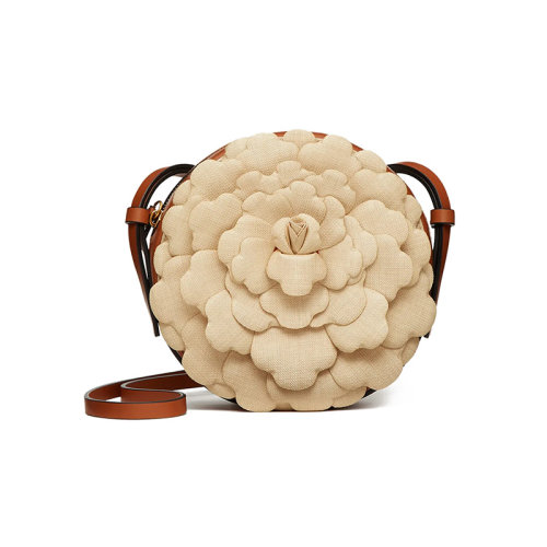 Valentino/华伦天奴 Atelier系列 女士天然色 03玫瑰版本粘胶酒椰花瓣圆形单肩手提斜挎包VW2B0I32TCWH20