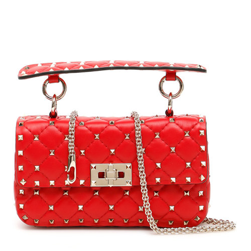 Valentino/华伦天奴 女士正红色小号铆钉装饰翻盖单肩包斜挎包手提包链条包女包 SW2B0123-NAP-JU5