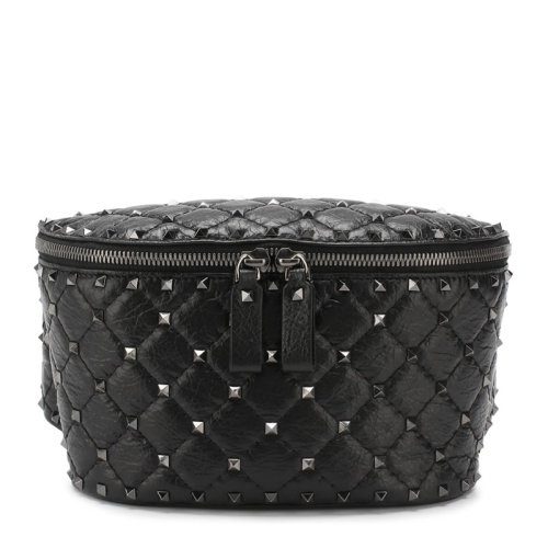 Valentino/华伦天奴 女士黑色菱格绗缝皮革经典铆钉装饰双向拉链开合腰包女包 RW2B0B45-ARD-0NO