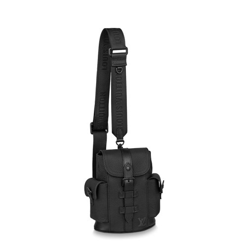 Louis Vuitton/路易威登 经典款CHRISTOPHER XS系列 男士黑色纹理牛皮革徽标压印黑扣弹簧扣配可拆卸肩带斜跨单肩包M58495