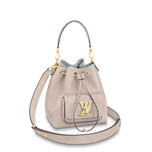 Louis Vuitton/路易威登 22春夏新款SEAU LOCKME系列 女士灰褐色粒面小牛皮金扣可调节肩带单肩斜挎手提抽绳水桶包M57688