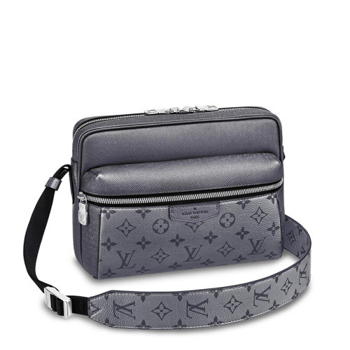 Louis Vuitton/路易威登 22春夏新款OUTDOOR系列 男士灰色老花帆布配皮牛皮革滚边银扣拉链开合单肩斜挎邮差包M30830