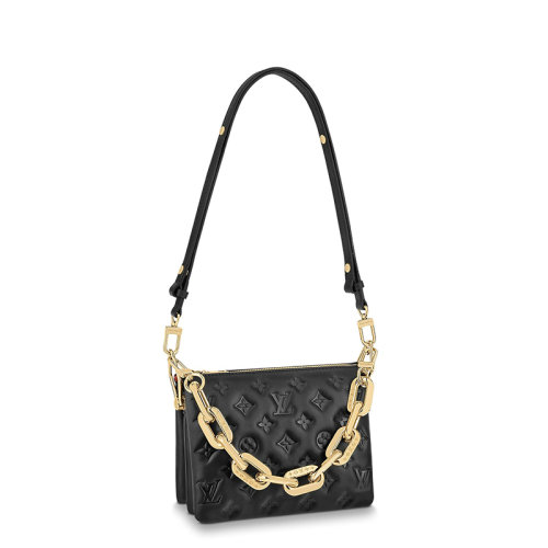 Louis Vuitton/路易威登 22春夏新款COUSSIN BB系列 女士黑色羊皮革老花压印金链条配可拆卸肩带单肩斜挎手提链条包M20574
