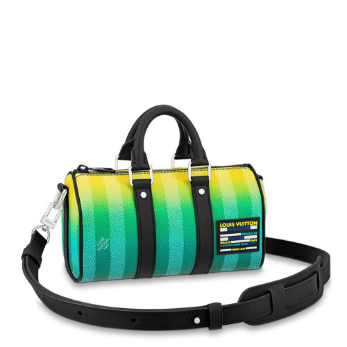 Louis Vuitton/路易威登 经典款KEEPALL XS系列 男士绿色渐变色条纹帆布皮革滚边饰徽标系列贴片银扣单肩斜挎包M59949